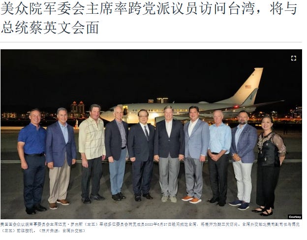 美众院军委会主席率跨党派议员访问台湾,将与总统蔡英文会面