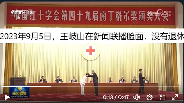 可以说,习近平他为了保住王岐山,是费尽了苦心,仁至义尽,两个人一直好兄弟好哥们,穿一条裤子的。三中全会之后,习近平丧失大权,王岐山才被迫从中国红十字会名誉会长的位置退休。如果习近平继续掌权,王岐山肯定继续担任中国红十字会的名誉会长。