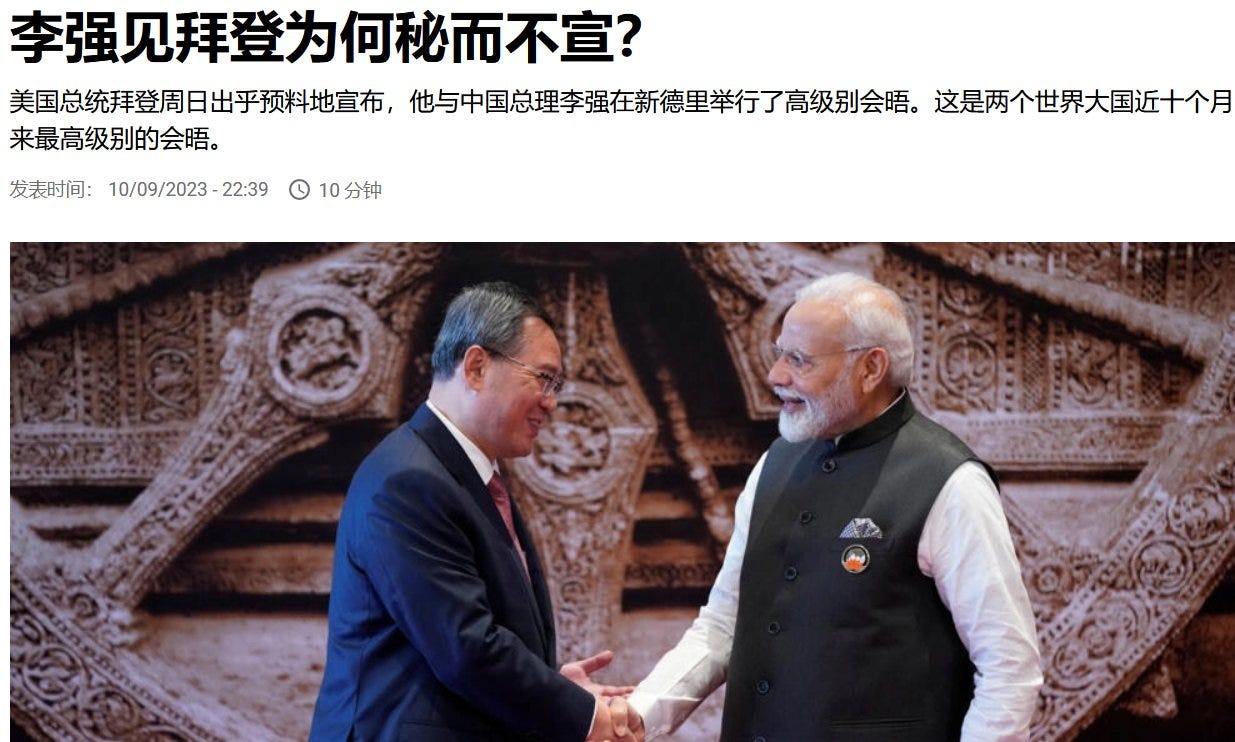 1、2023年9月10日,李强出席G20峰会与拜登短暂交流