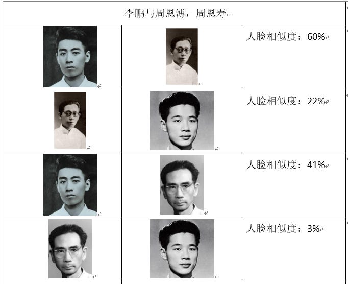 2、简单说,比对结果就是李鹏虽然长得也不是特别像周恩来
